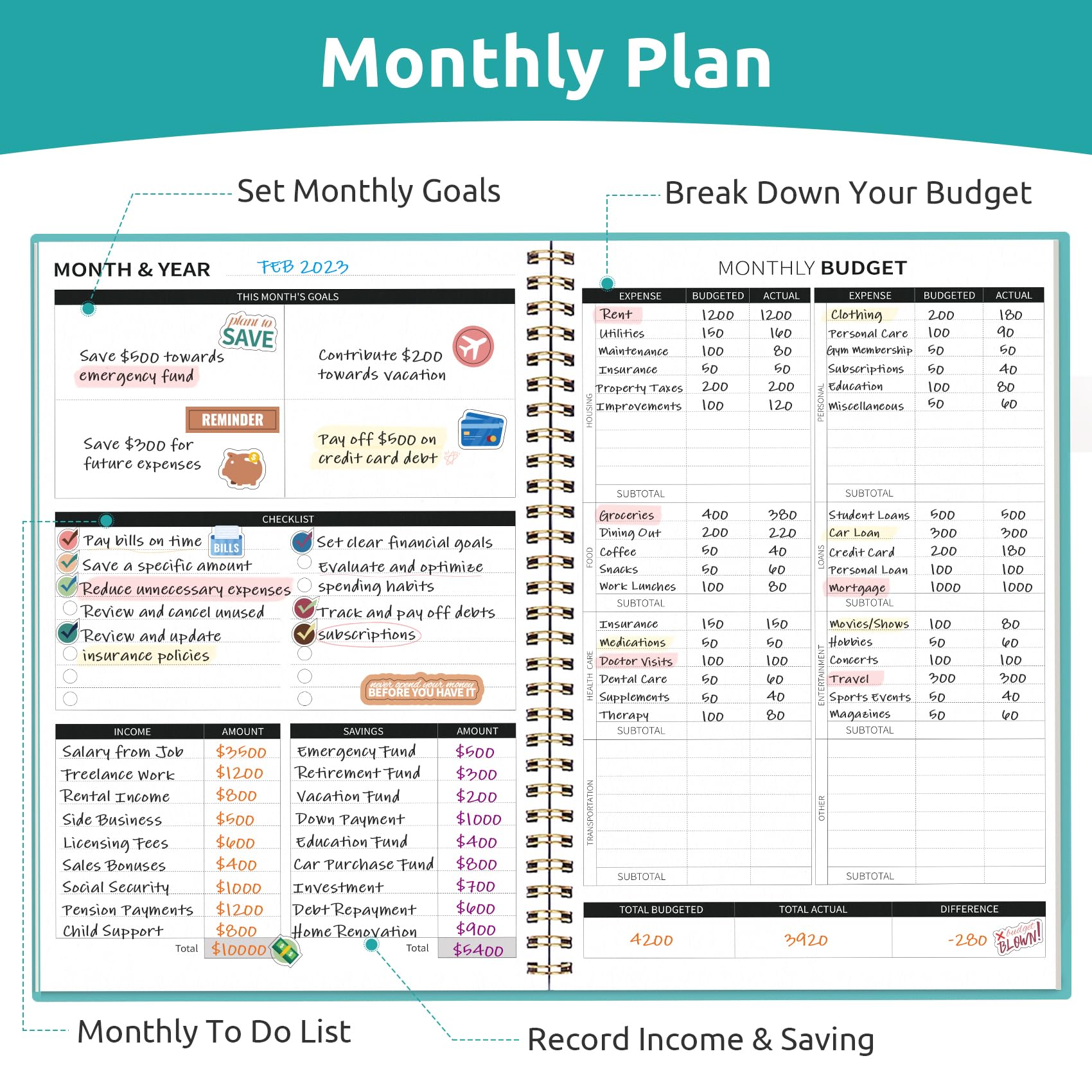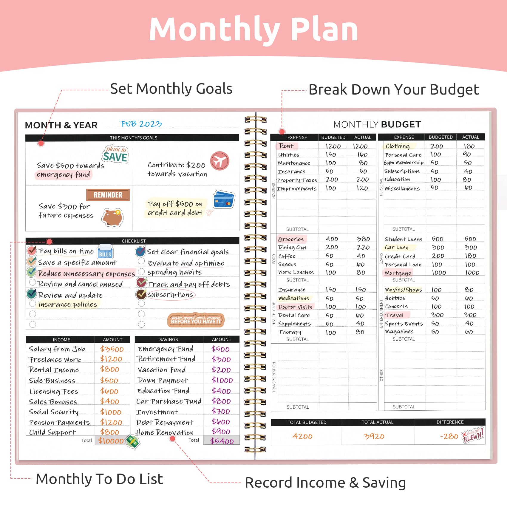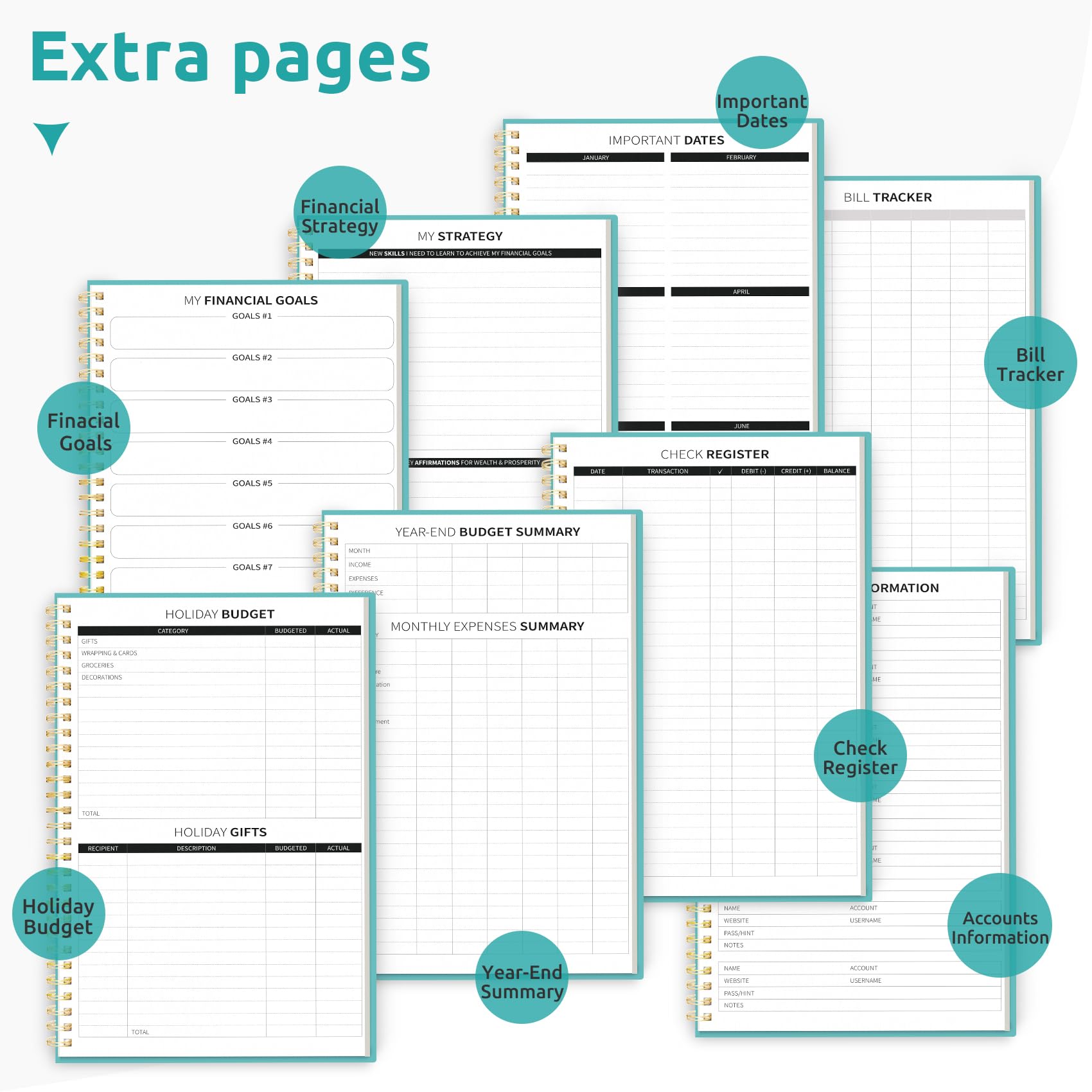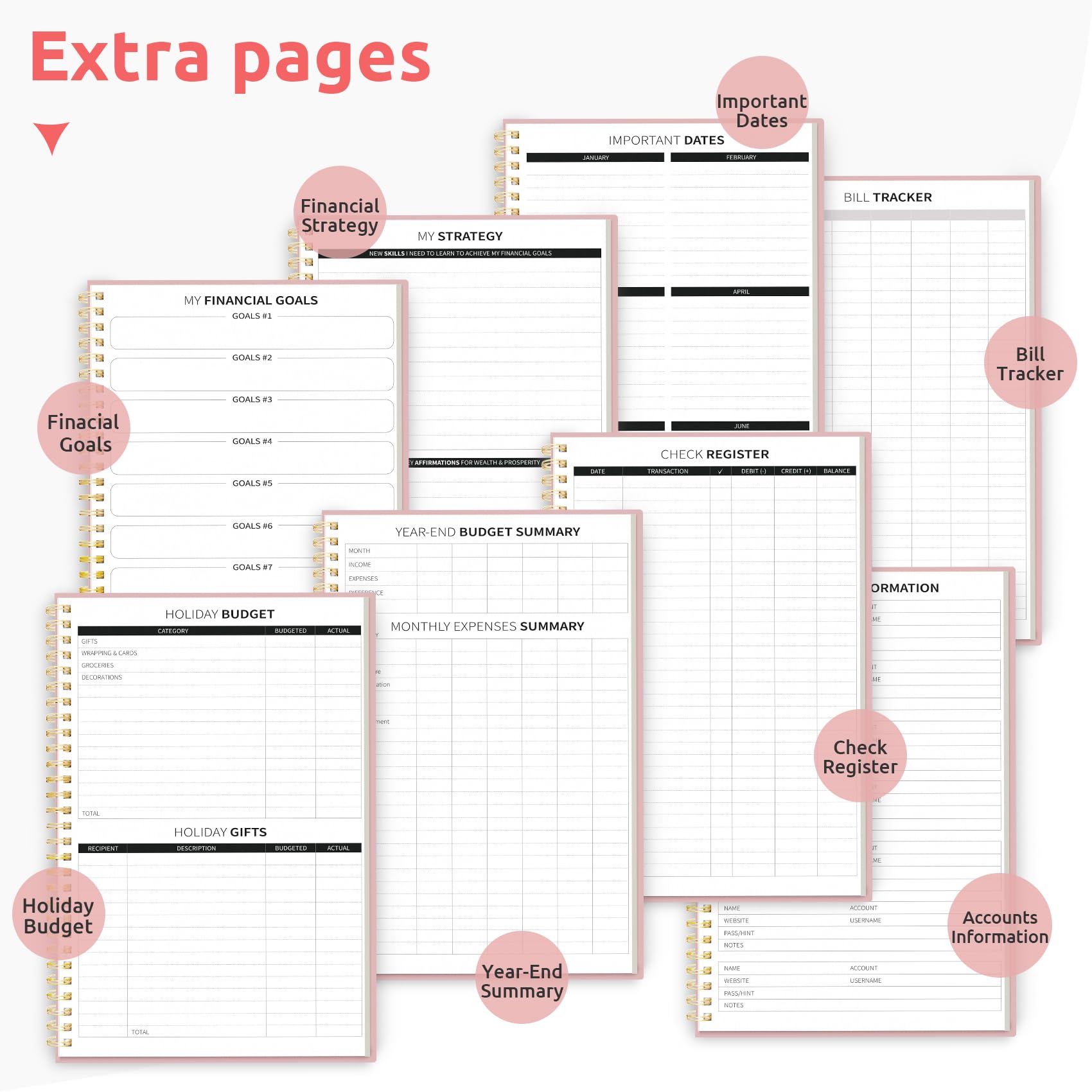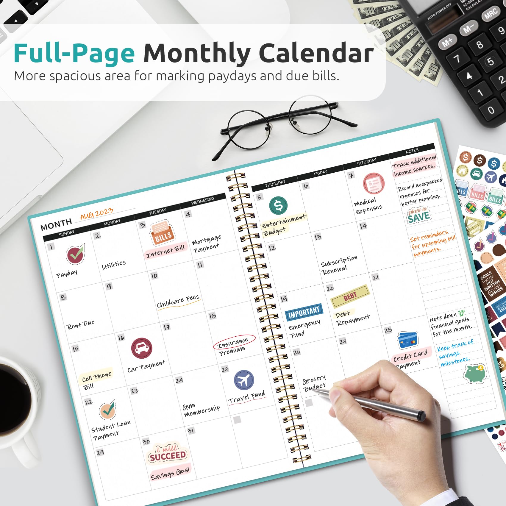 - Full-Page Calendars & Bonus Stickers - Featuring full-page calendars each month, you'll have ample space to mark paydays, bills due, appointments, and important dates. Say goodbye to cramped boxes and difficult writing spaces. Plus, we've included 3 cute sticker sheets that allow you to personalize your financial organizer and make budgeting more fun.