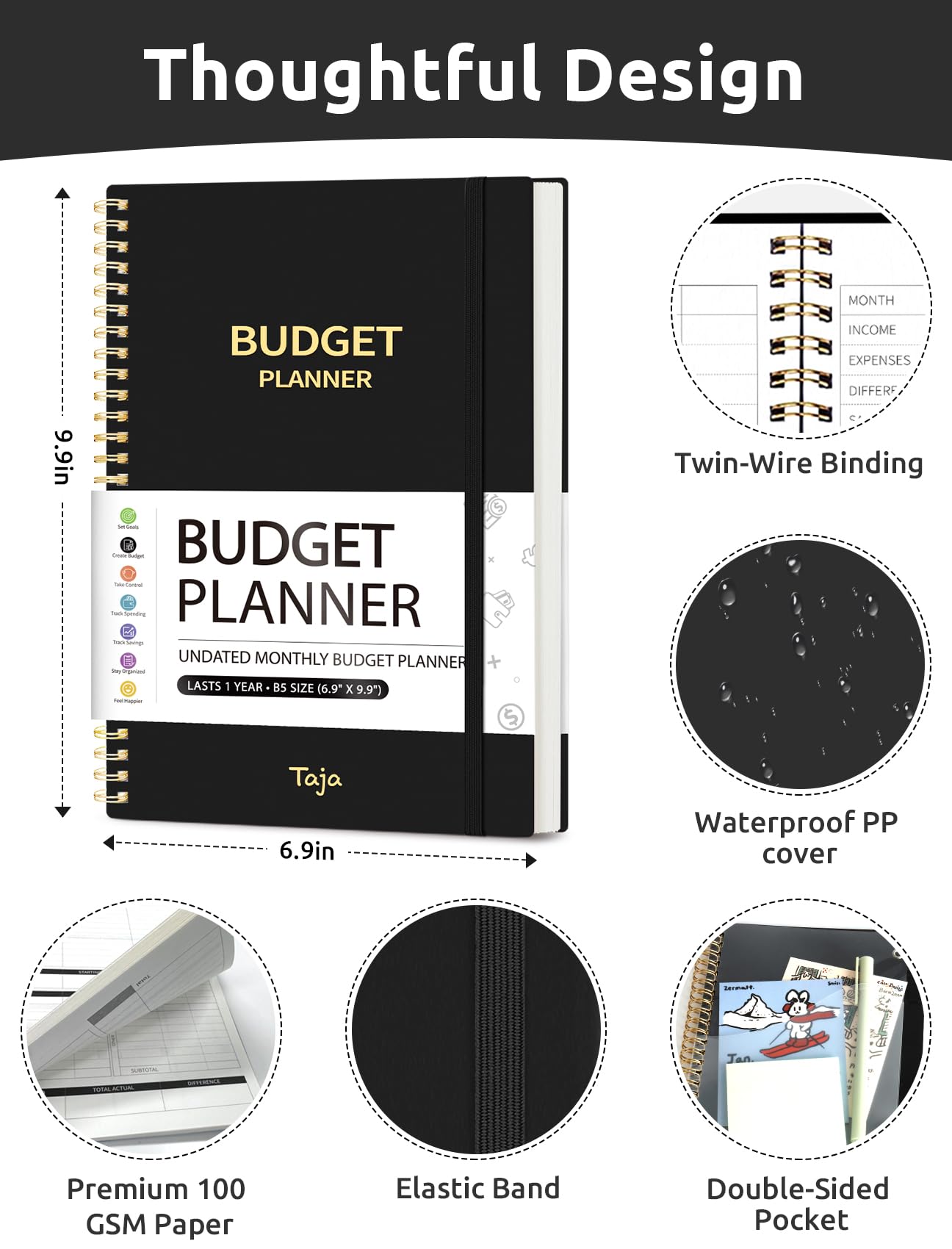 Budget Planner - Monthly Budget Book with Expense Tracker Notebook, Undated Bill Organizer & Finance Planner to Take Control of Your Money, 2024-2025 Account Book to Manage Your Finances-Black