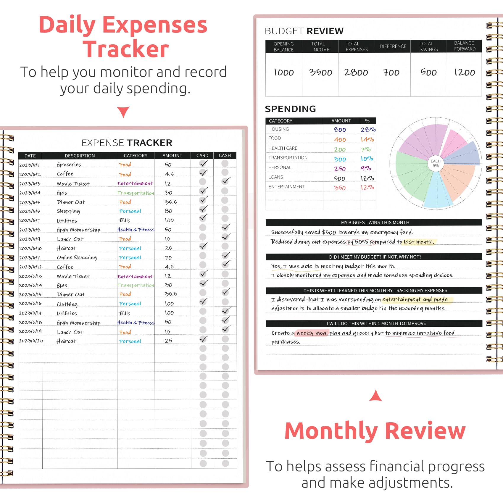 - Effective Budget Planning - Take control of your finances with the budget account book. This comprehensive planner allows you to plan and track your income, expenses, savings, and financial goals in one convenient place. With its intuitive layout and easy-to-use sections, you can stay organized and make informed decisions to achieve financial success.